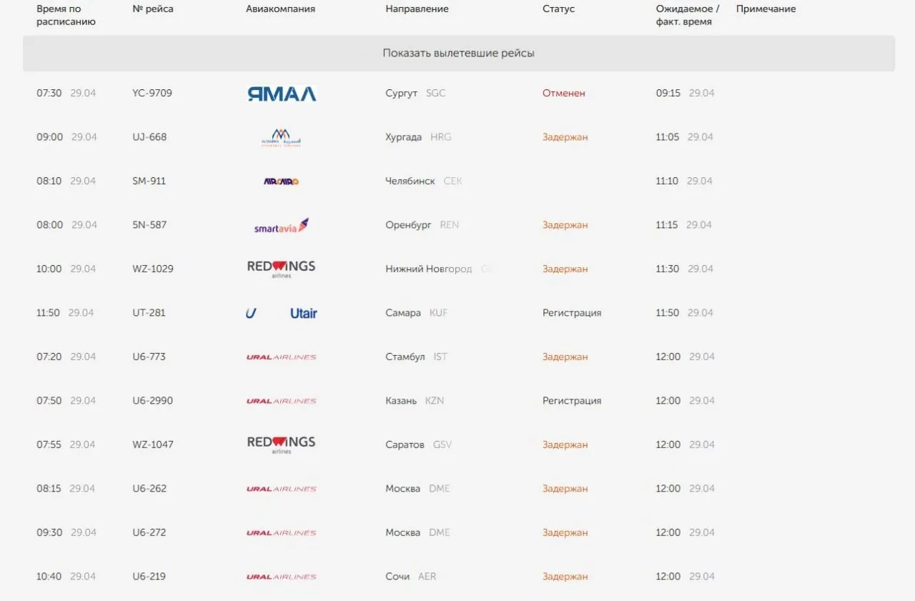 В Екатеринбурге из-за ограничения на прием и выпуск воздушных судов 11 рейсов задержано, 2 отменено