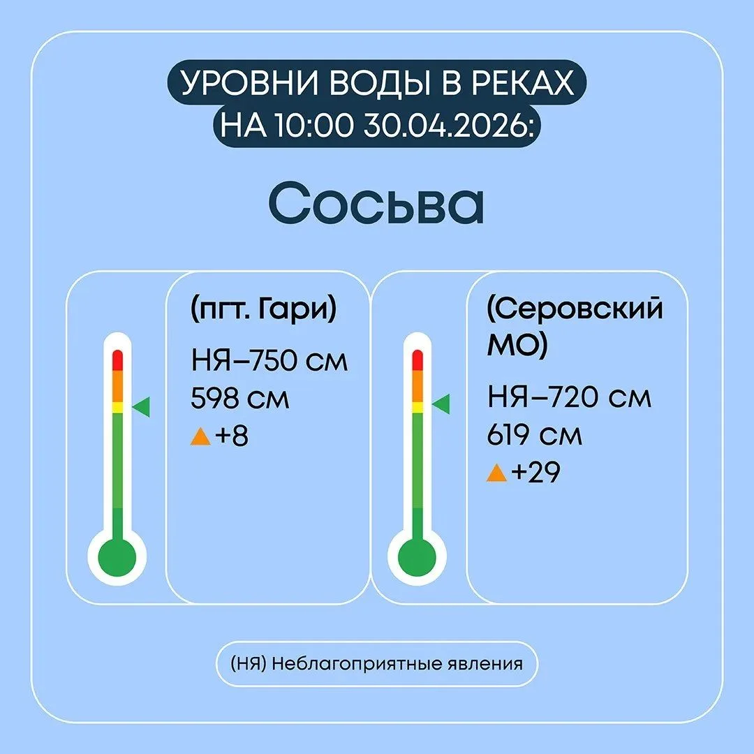 Специалисты наблюдают за изменениями уровня воды в реках. При сохранении текущей динамики уровня воды ожидается выход реки Лобвы на пойму 3 мая, реки Сосьвы — 4 мая.